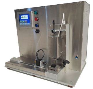The drill motor unit can be effortlessly moved vertically, for quick change of hole drill punches. The start and stop position of the drilling head is positioned by a Servo motor to allow drilling of multi lumen tubes.